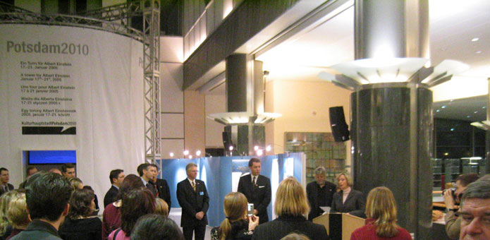Vor internationalem Publikum eröffnete Bundespräsident Horst Köhler die Medieninszenierung, mit der sich die Stadt Potsdam in den Räumen des Europaparlamentes als Kulturhauptstadt 2010 bewarb. In einer atemberaubenden Kamerafahrt schwebt der Besucher über das Schloss Sanssouci, den Filmpark Babelsberg und das Holländerviertel bis hin zu dem nach Albert Einstein benannten Einsteinturm. In einer aufwendig produzierten 3D-Animation wurde der Turm von uns virtuell nachgebaut und in seiner Funktionsweise sichtbar gemacht.